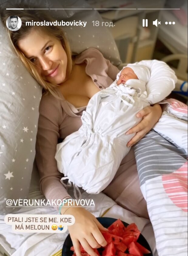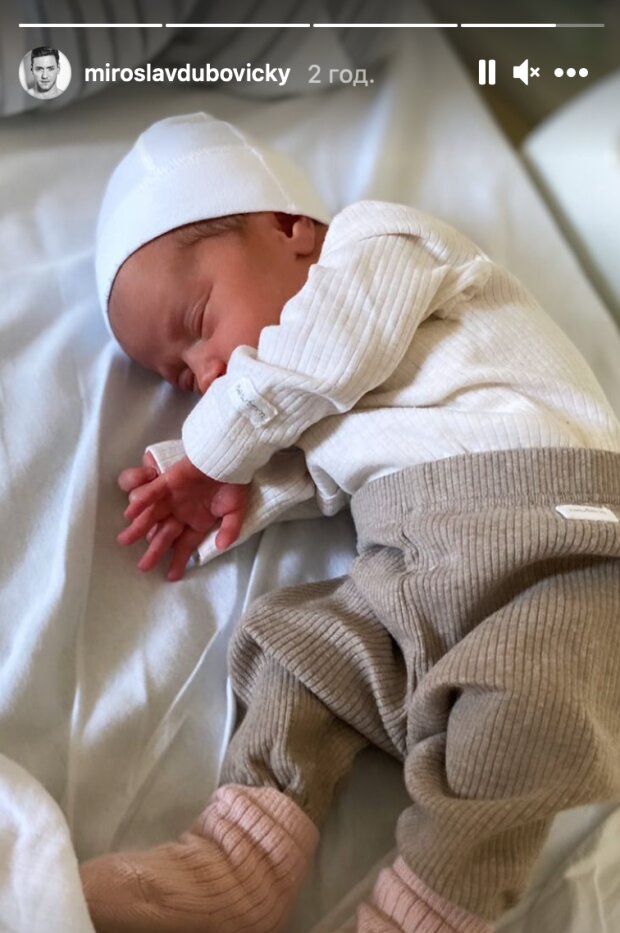 Podle serveru blesk.cz hrdý otec Miroslav Dubovický nechtěně prozradil, že holčička se narodila císařským řezem. Důkazem toho je cedulka, kterou měl připnutou.