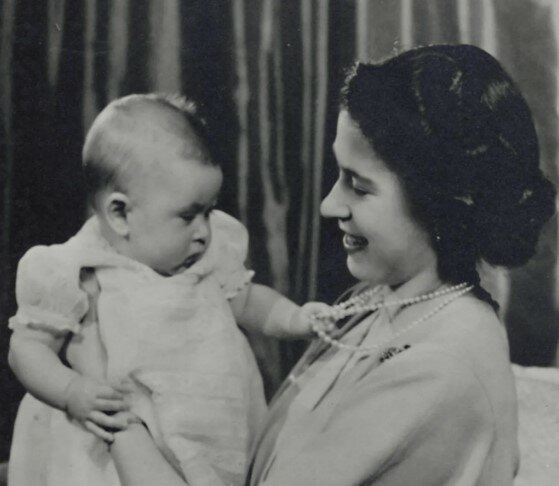 Jeden z prvních snímků panovnice s jejím prvorozeným synem.