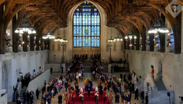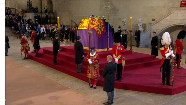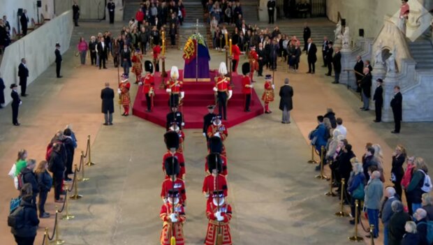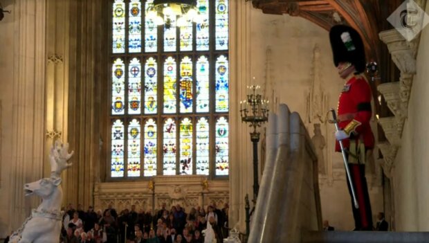 Osm vnoučat královny Alžběty uspořádalo bdělost u její rakve ve Westminster Hall.