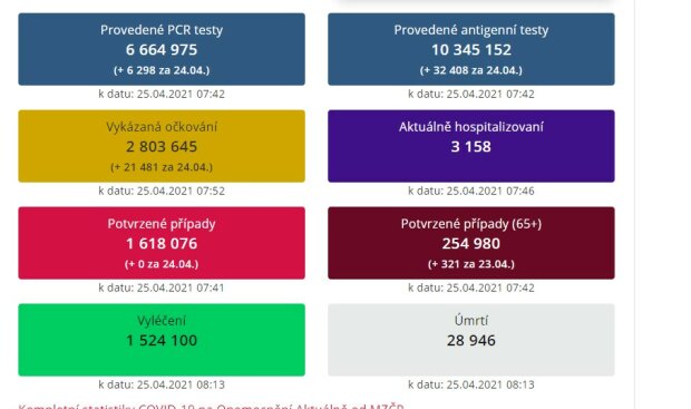 Webové stránky ministerstva zdravotnictví mají technické potíže, a proto se nenačetla všechna data. Systém momentálně ukazuje nulu potvrzených případů.