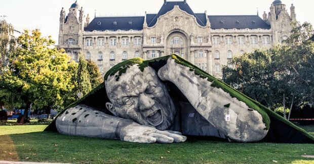 Tato hrozivá socha se nachází v Budapešti v Maďarsku.