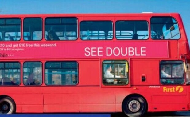 Mobilní operátor T-Mobile propaguje svoji akci “Vlož si na účet 10 liber a dostaň dalších deset jako dárek.” Druhý řidič vypadá velmi reálně.