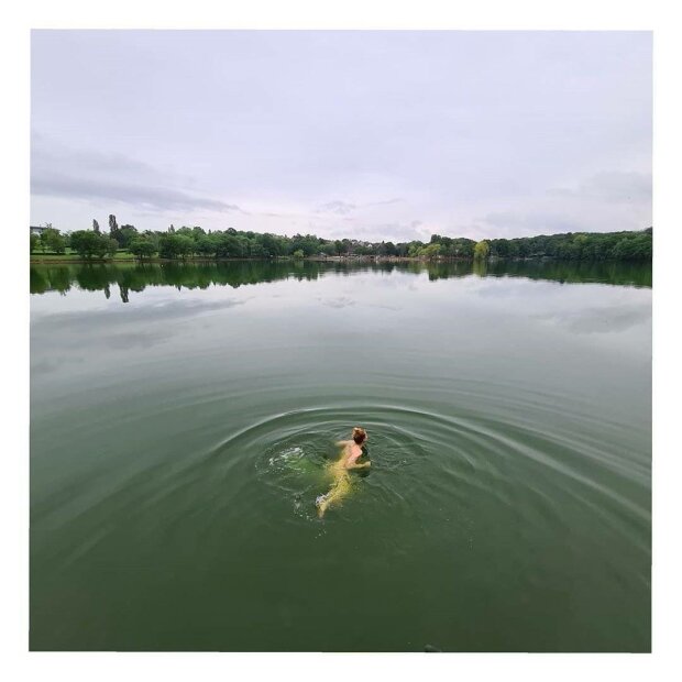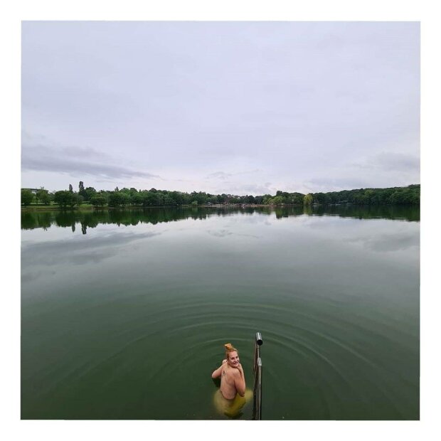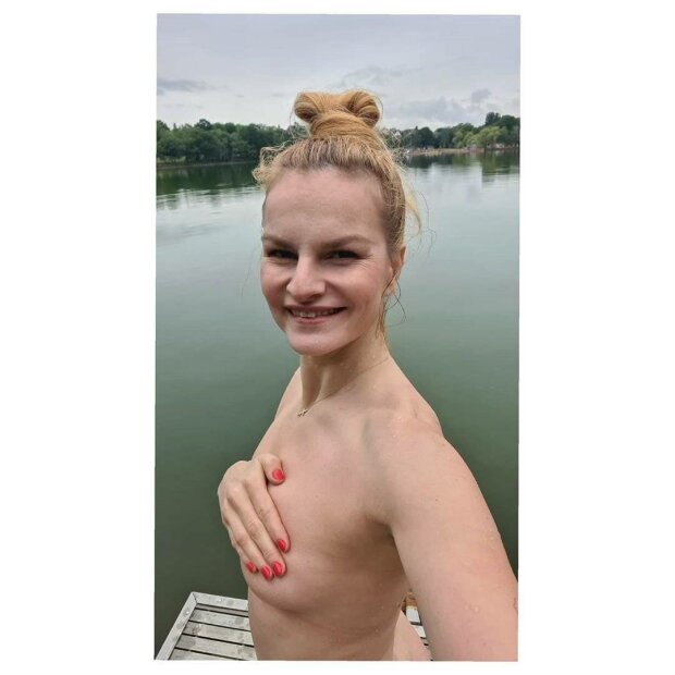 Pod svými fotkami napsala:” Bylo to moje první koupání na nuda pláži v životě!!! Měli jsme s přítelem toto překrásné kamencové jezero v Chomutově CELÉ pro sebe. Úžasné. Úžasné.”