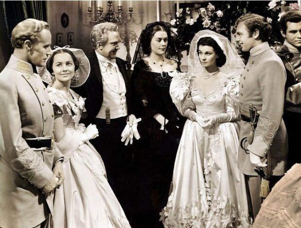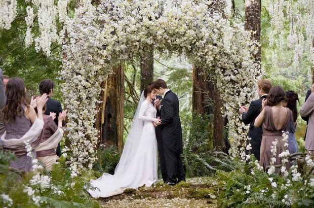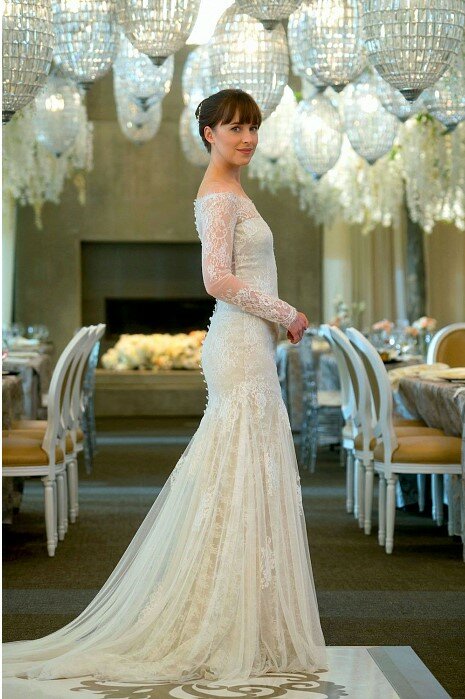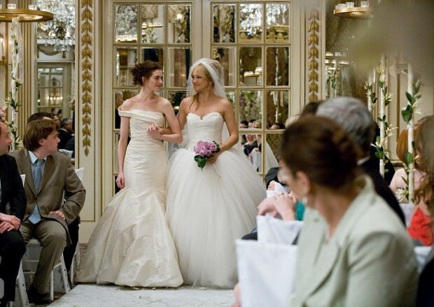 Ve filmech a seriálech, mimochodem, je to jako v reálném životě. Nejoblíbenější šaty jsou klasická bílá. Koneckonců, s ním nevěsta dostane neomezenou svobodu při výběru: jeden má rád obrovské retrokrinoliny, druhý rád moderní minimalistické šaty.