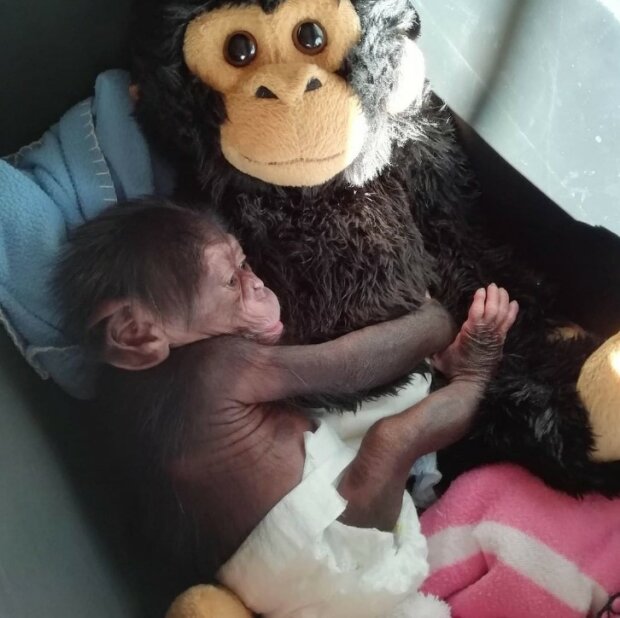 Aby malý Džibril cítil přítomnost nejen lidí, ale i sobě podobných, přinesli mu zaměstnanci Zoo plyšovou hračku šimpanzů.