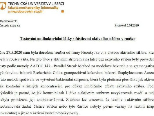 Z tohoto lze usuzovat, že textilie s aktivním stříbrem neobsahovala žádné částice stříbra nebo tyto částice nebyly pevně vázány na textilii a již se v aktivní vrstvě nevyskytovaly,“ zní část textu z výsledného protokolu.