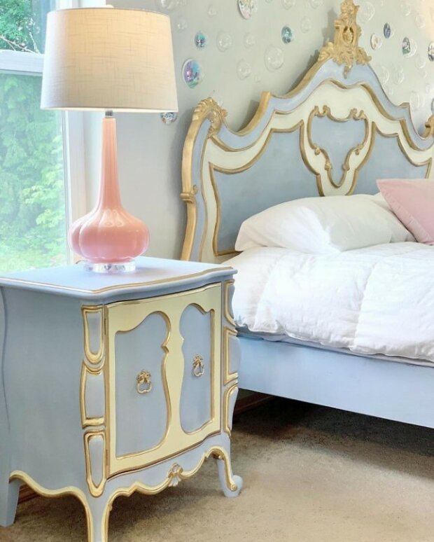 "Je to poslední místnost, kterou jsem zdobila, a je to jedna z nejkouzelnějších místností v našem domě. Našla jsem starožitný nábytek a namalovala ho tak, aby vypadal jako animované filmy.
