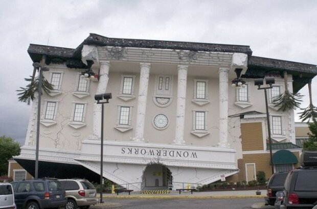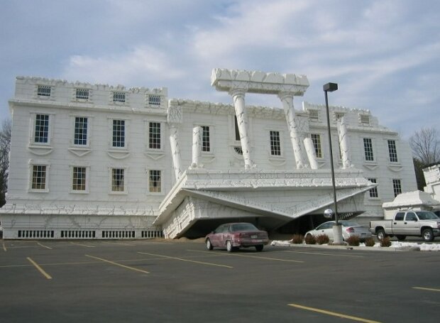 Přišlo to tak daleko, že začali stavět docela neuvěřitelné domy, při pohledu na které se zdá, že prostě spadly z nebe, navíc přistáli velmi nešťastně - střechou dolů. Všude, kde se tito převaděči objeví, mají závratný úspěch, a to v pravém slova smyslu.