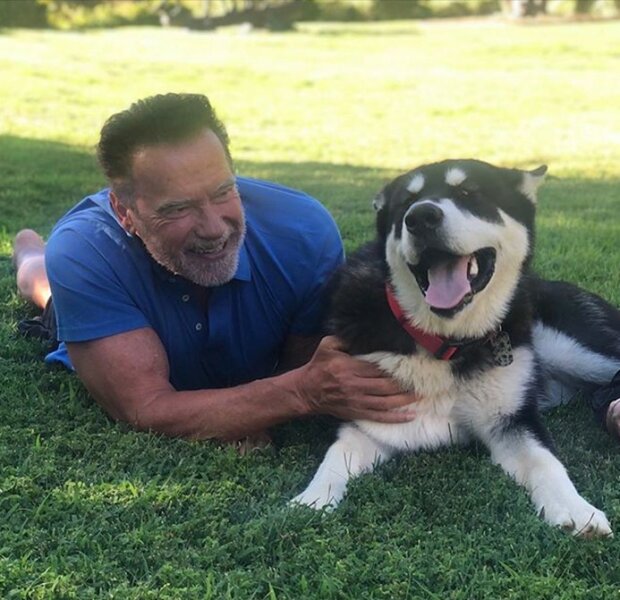 Během pandemie guvernér adoptoval nyní již ročního psa přezdívaného Dutch. Pojmenoval psa Dutch na počest své postavy ve filmu Predátor, což vedlo k tomu, že lidé žertovali, jak Terminátor adoptoval dravce. Dutch si stále zvyká na další dva zvířecí společníky Arnolda, poníka Whisky a osla Lulu.