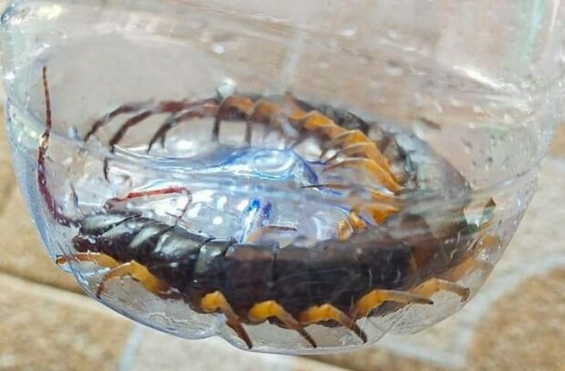 Žena vyskočila z pohovky a spěchala ke svému synovi, a babička, která byla poblíž, pokoušela chytit a zničit jedovatou stonožku.