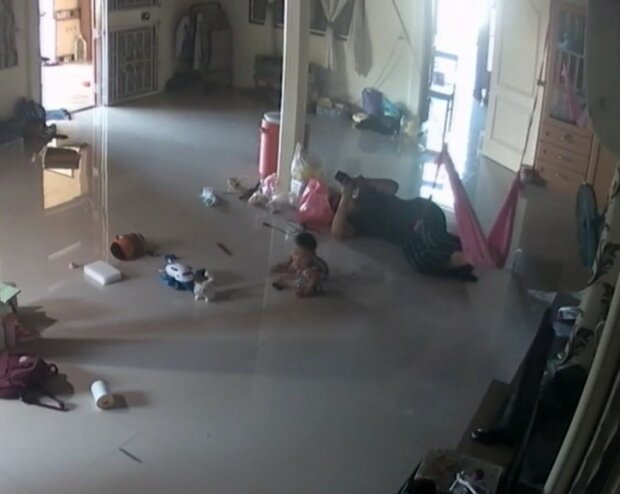 Na záběrech je vidět, jak nic netušící batole sedí na podlaze a k němu se plazí obrovský hmyz. Reakce matky zachránila dítě před nepředvídatelnými následky.