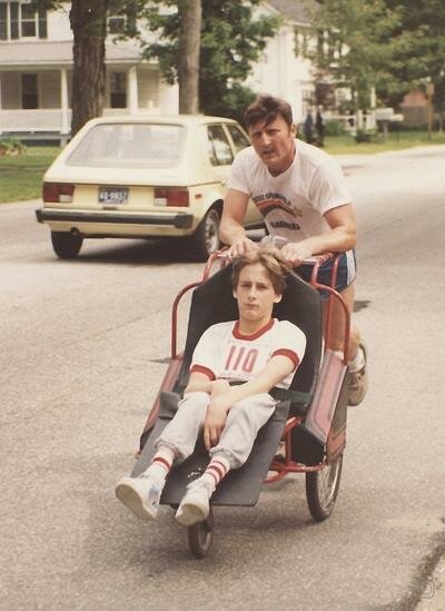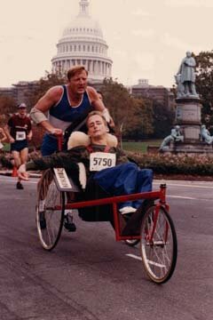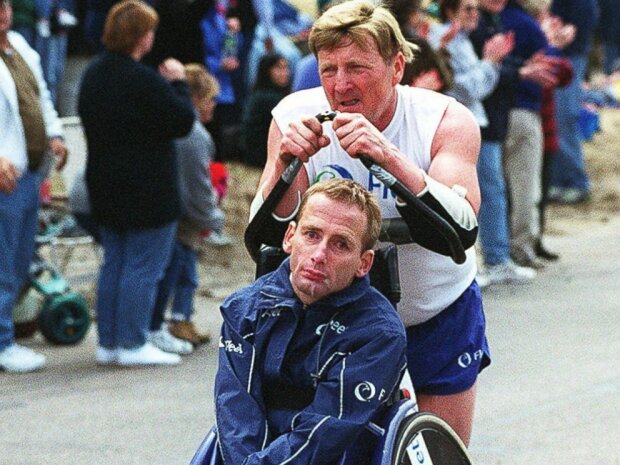 Od roku 1977 začal muž cvičit v tělocvičně a již v roce 1981 se spolu s Rickem poprvé zúčastnil maratonu v Bostonu. Muž zvládl vzdálenost 42 km se svým synem na vozíku.