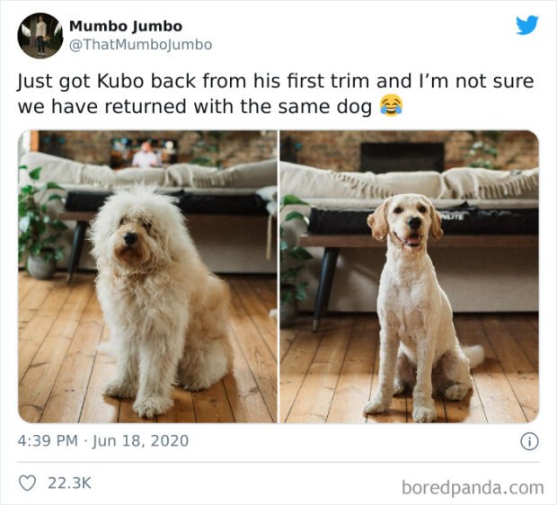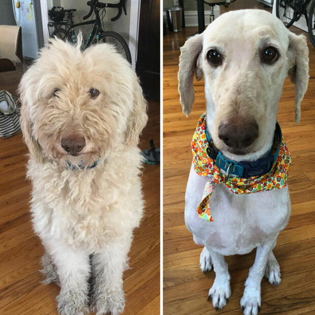 Můj pes se nechal ostříhat a vypadá tak, jakoby se opil