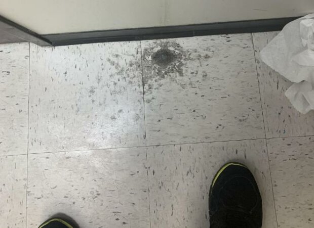 Fotografie ukazuje, jak místo, kde po celý rok kapal dezinfekční prostředek, bylo poškozeno.