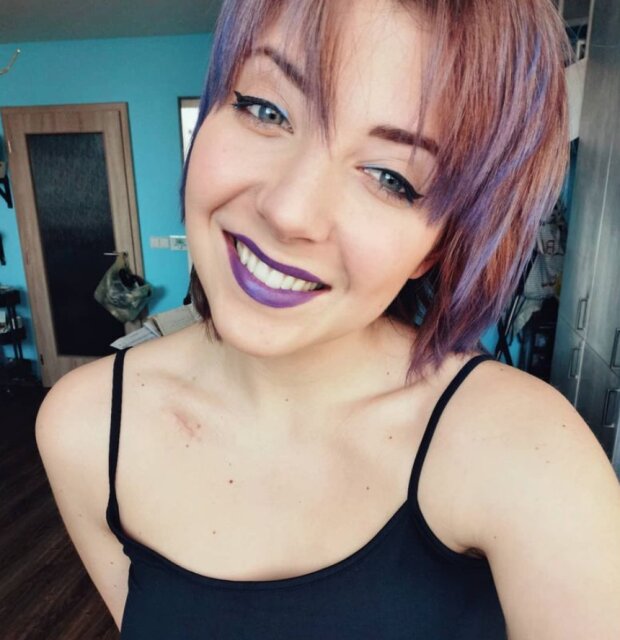 Na nové fotografii, Anička s fialovými vlasy také sladila i rtěnku a moc ji to sekne.