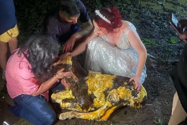 K porodu, který byl komplikovaný kvůli velikosti plodu, pomohlo sedm farmářů, kteří byli pozváni na svatbu jako hosté.