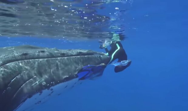 Žena pochopila, že je v nebezpečí. Přestože velryby nevnímají lidi jako hrozbu nebo překážku, mohou způsobit potopení a další smrt člověka.