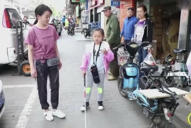 Žena se snaží holčičku naučit žít ve světě vidících.