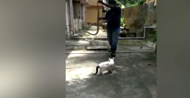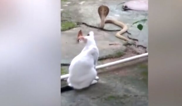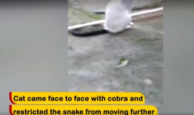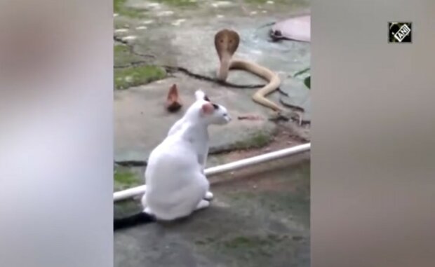 Po dobu 30 minut, zatímco specialista jel na místo, kocour hlídal dům a nenechal kobru proniknout dovnitř.
