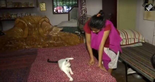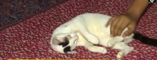 Domácí kocour zablokoval cestu kobře, která se pokusila vlézt do domu Sampada Kumara Paridy.