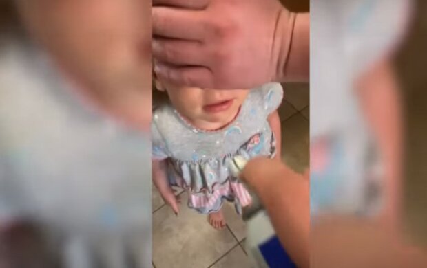 Tajemství je v tom, že zatímco dívka měla zavřené oči, tatínek tlačil na plechovku se šlehačkou, ze které se ozýval charakteristický zvuk.