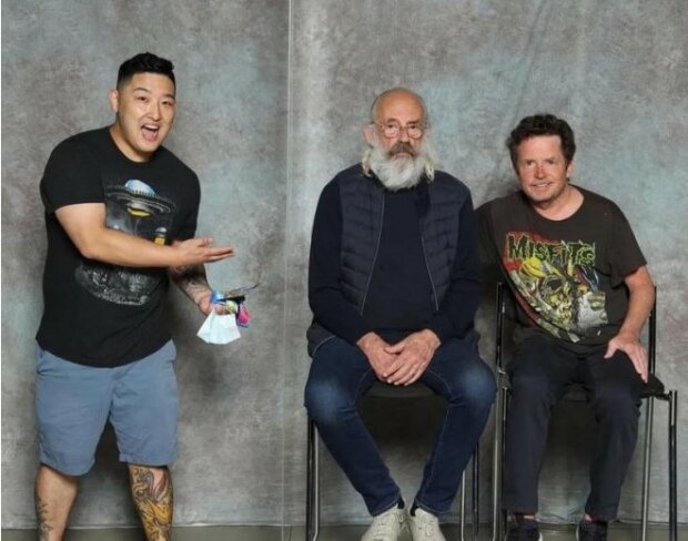 Foxův vzhled se téměř nezměnil od té doby, jak on hrál Marty McFlyho v sci-fi seriálu, zatímco Lloyd, který zahrál Dr. Emmetta Browna, známého také jako Doc, ohromil fanoušky svým bujným plnovousem, hustým knírem a dlouhými bílými vlasy.
