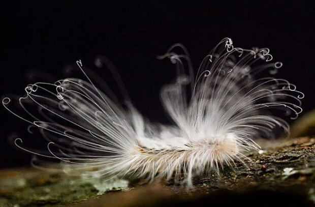 Tato skvrnitá housenka vypadá, jako by měla za ušima dvě tužky