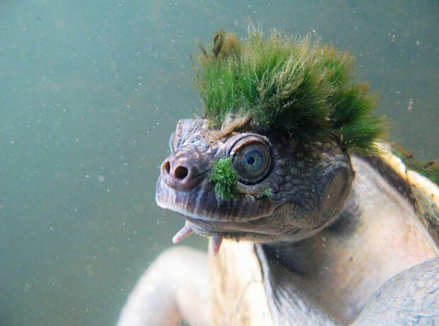 Ne každý se může chlubit zelenou irokézou. Ale tato říční želva Mary je nadšená