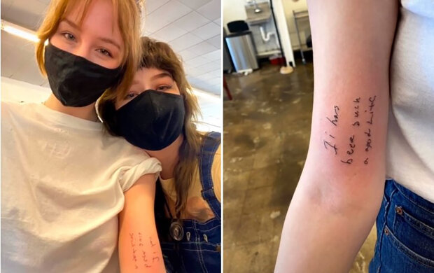 Když děvčata dostala zprávu od svého otce, rozhodly se, že tato konkrétní fráze bude aplikována na kůži ve formě tetování.