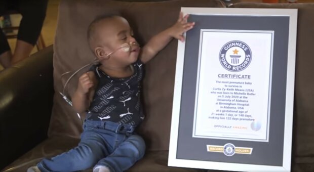 Informuje o tom web Guinessovy knihy rekordů, který uznal Curtise Z-Keitha Meanse jako nejvíce nedonošené dítě na světě, kterému se podařilo přežít.