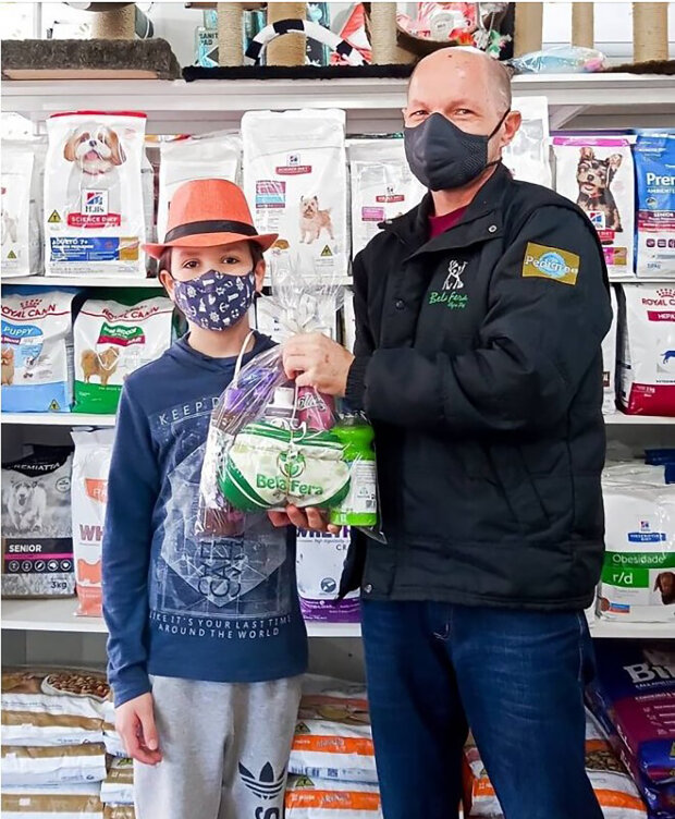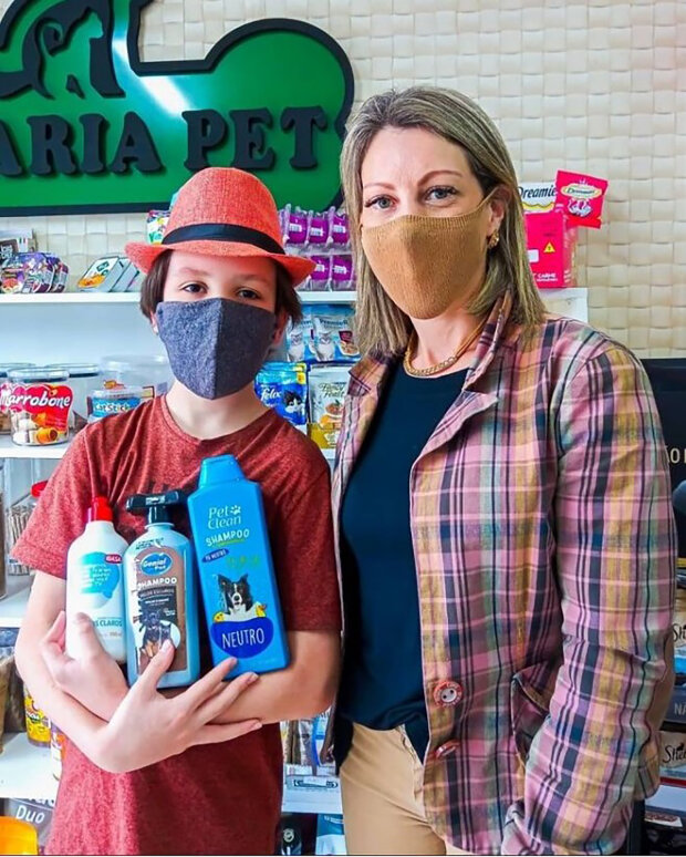 Thiago často pracuje s místními obchody, které darují prostředky na péči o zvířata, jako je šampon a krmivo