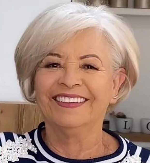 Stylisté aplikovali fialový oplachovač, aby odstranili šedinu z vlasů, změnili barvu a tvar účesu. Vrcholem bylo jemné slavnostní líčení, které vzhled doplnilo.