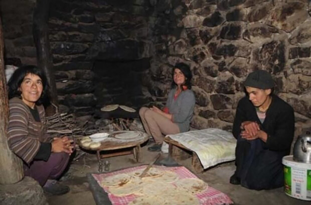 Během svého pobytu v horské divočině rodina prakticky nevyužila výhod civilizace. Jídlo pár vaří na ohni.