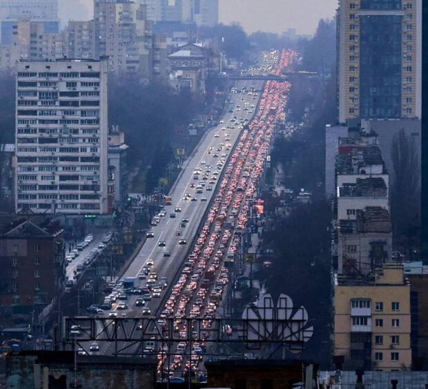 Už v sedm hodin ráno došlo k dopravnímu kolapsu, Kyjevané se masivně snažili opustit město a na čerpacích stanicích se tvořily kilometrové fronty.