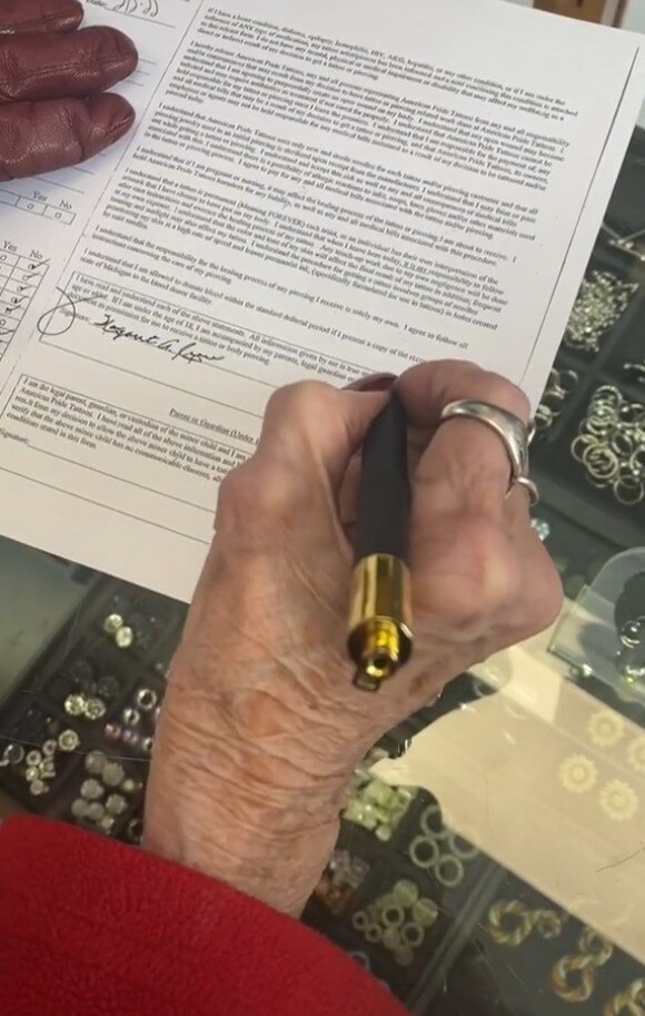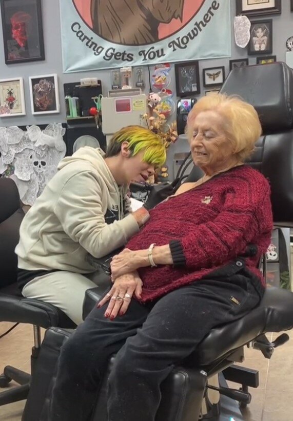 Poté, co si ženy vybraly tetovací salon, přišly za mistrem, zejména proto, že měli důvod - důchodkyně v tento den slavila 90. narozeniny.