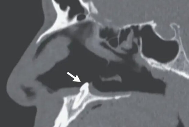 Lékaři pak provedli endoskopii a našli v pravé nosní dírce bílý předmět, který byl později identifikován jako ektopický, tedy zub, který vyrostl na nesprávném místě.