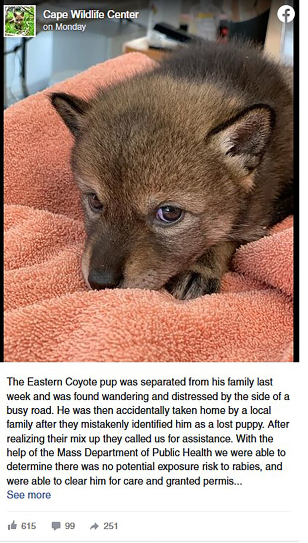 "Místní rodina vzala kojota domů a mylně ho považovala za ztracené štěně. Když si uvědomili chybu, obrátili se na nás o pomoc," vysvětlili zástupci centra.