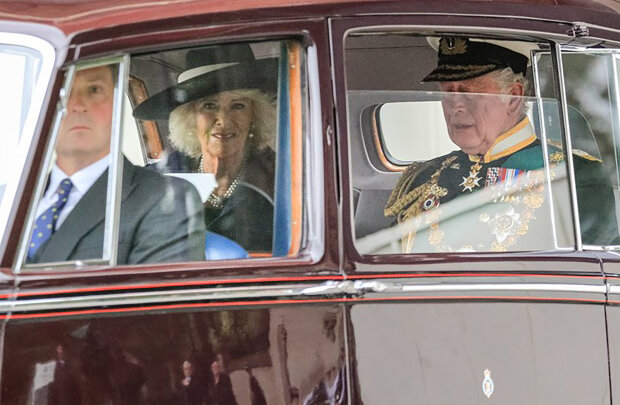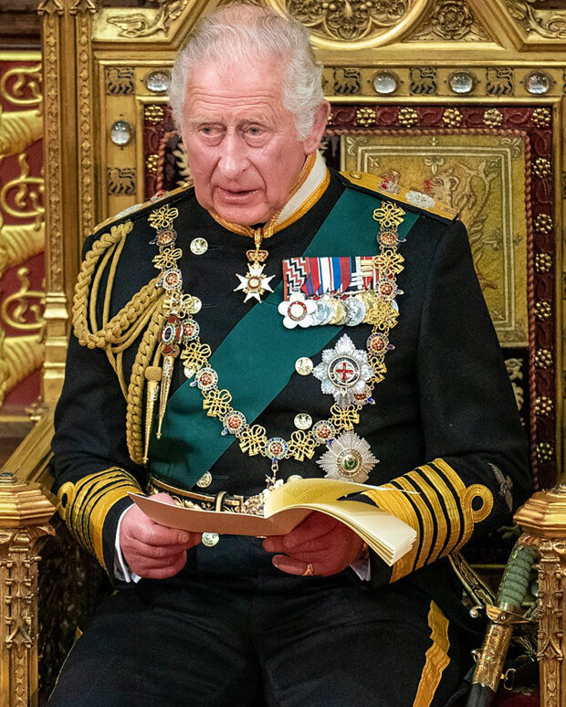 Místo královny pronesl slavnostní projev princ Charles. Všimněte si, že během cesty do Westminsteru vypadal sklesle: do sítě se dostaly vzácné záběry z auta.