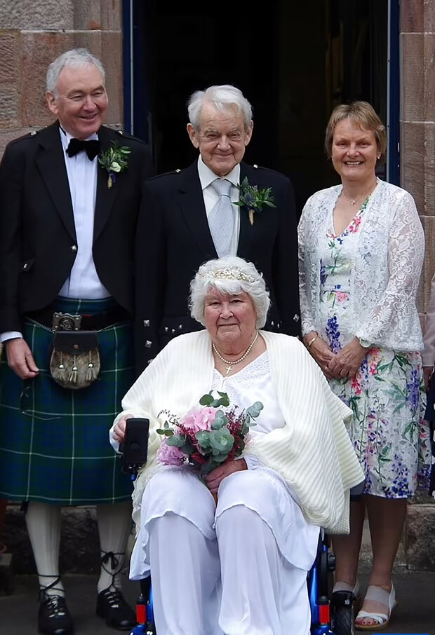 Pár se oženil teprve nedávno. Oslav se zúčastnilo pět dětí a 11 vnoučat. Jane na invalidním vozíku vezla k oltáři 29letá vnučka Claire McDonaldová a 23letý vnuk Craig McDonald.