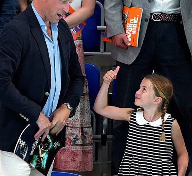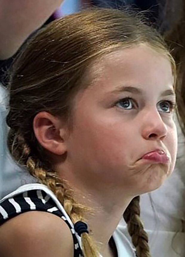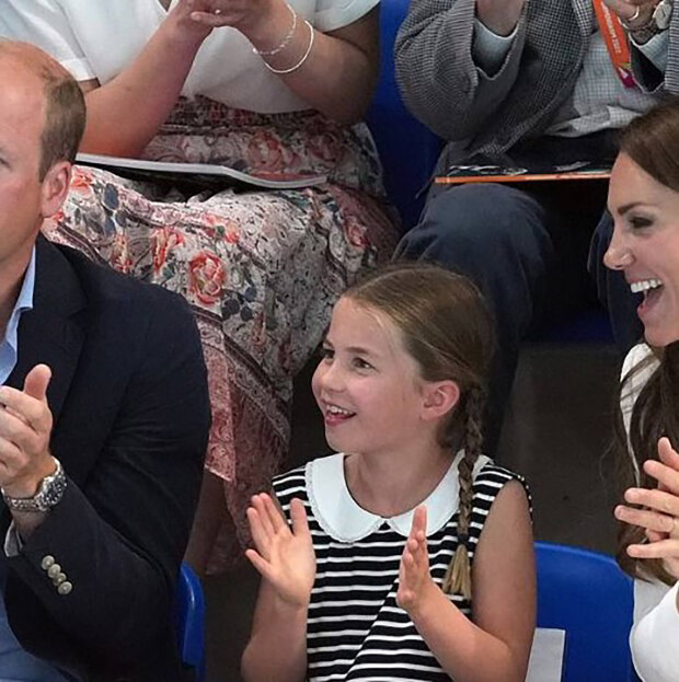 Bylo jasné, že princezně přílišná pozornost veřejnosti není úplně příjemná, a tak ji William povzbudil tím, že jí položil ruku na rameno, a v některých momentech Charlotte držela matčinu ruku.