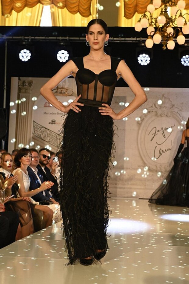 Tentokrát však přijela jako manželka a pracovně se účastnila přehlídky módní návrhářky Zuzky Lešák Černé.