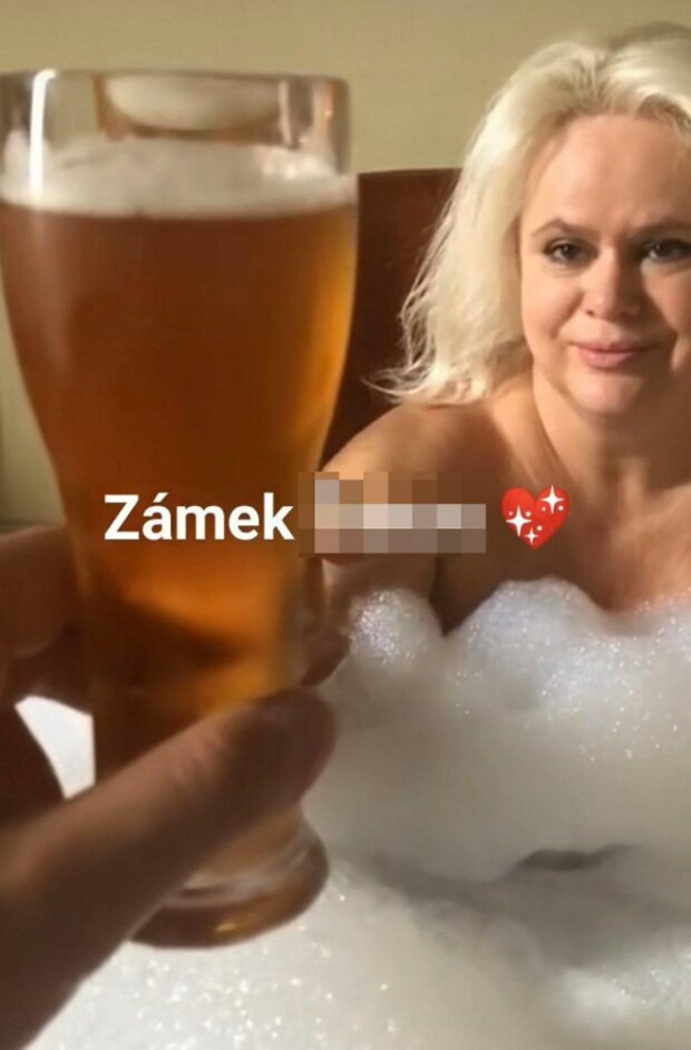 Konkrétně sdílela záběr, jak spolu s manželem relaxují v pivní koupeli.