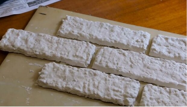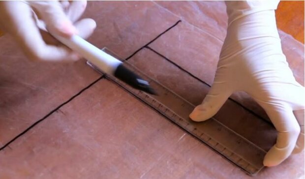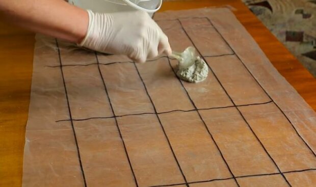 1. Na voskovaném plátně nakreslete vzor budoucích cihel požadované velikosti.