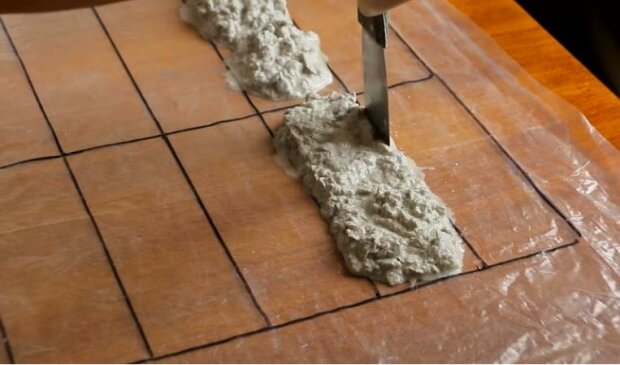 5. Pomocí lžicí dejte směs na voskované plátno. Můžete udělat formu pomocí stěrky nebo špachtle.