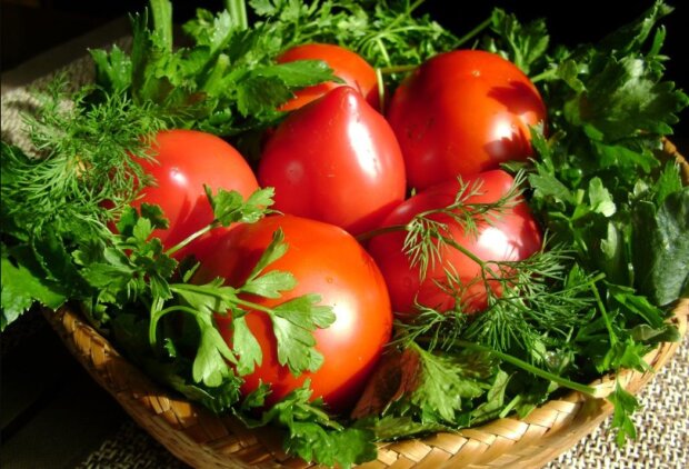 Sterilizujte jednolitrové sklenice a na dno pokládejte plátky rajčat. Mezi každou vrstvu rajčat vkládejte petržel.