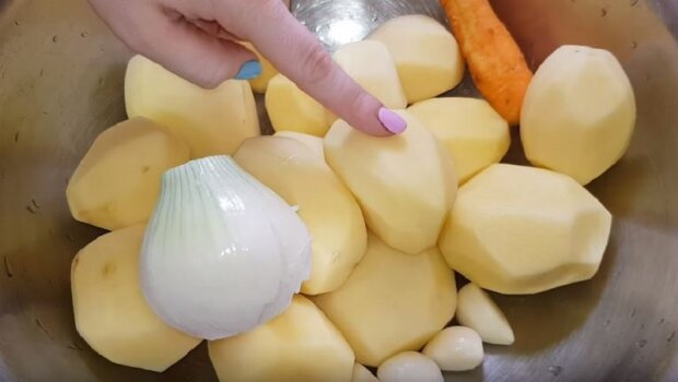 1 Začneme se zeleninou. Brambory, mrkev, cibuli a česnek nastrouhejte. Použít můžete mixér nebo elektrický mlýnek na maso s vyhovujícím nástavcem, abyste si práci ulehčili.