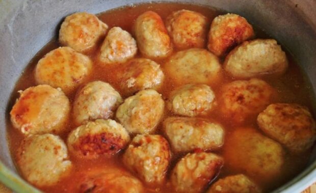 Vařte rýži, dokud se nevaří. Smíchejte s cibulí, vejcem, solí a pepřem. Poté přidejte mleté maso a promíchejte, dokud nebude hladký. Každou z nich rozvařte v mouce. Smažte kuličky v pánvi, dokud na všech stranách nezhnědnou. Pak je vložte do pánve se silným dnem.