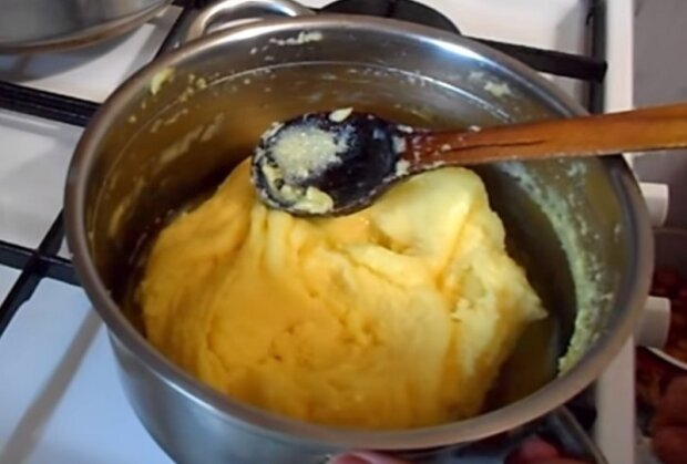 4 Vaříme na středním ohni. Po zahřátí se hmota začne roztahovat. Vařte okolo 5-7 minut za stálého míchání.