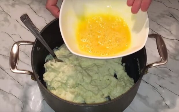 3 Do hrnce se silným dnem (ale ne emailovým) dáme tvaroh, máslo, vejce, sůl, sodu a rukama pořádně promícháme.