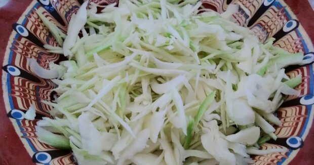 Nasekejte jemně zeli. Pak rozmačkejte ho rukama, aby bylo měkké. Není nutné silně mačkat.